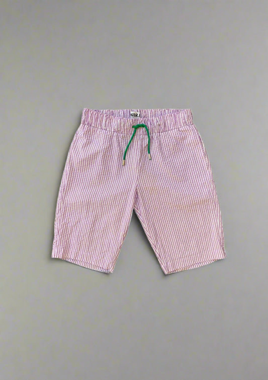 Bermuda en Seersucker lavande et blanc à rayures